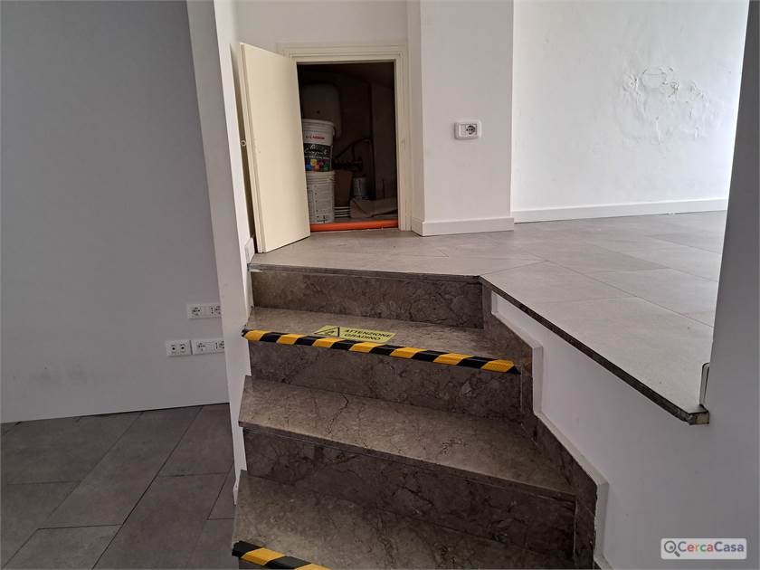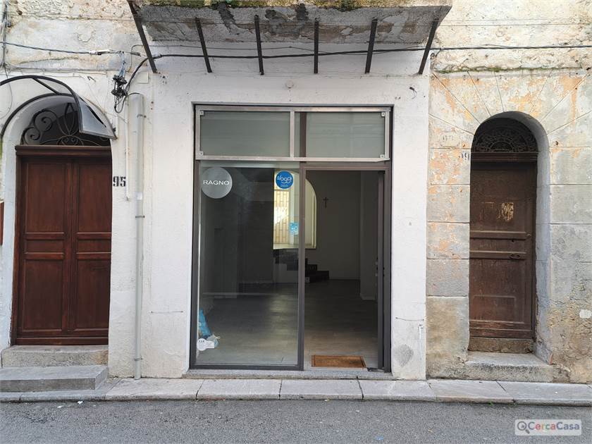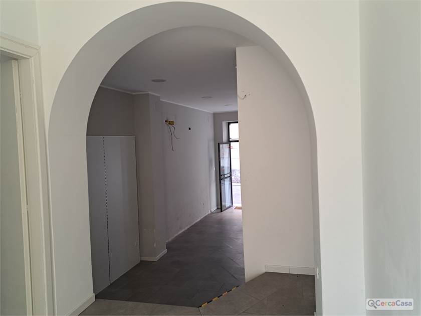 Il negozio oltre a presentare una vetrina sul corso all'ingresso del locale, dispone di un ulteriore spazio espositivo realizzato sulla parete sinistra del primo ambiente, che essendo illuminato da faretti (come il soffitto) risulta perfetto per valorizzare i prodotti in vendita. Salendo cinque gradini si attraversa un suggestivo arco accedendo al secondo ambiente retrobottega, con sottoscala dove vi sono il boiler elettrico con l'autoclave e due riserve idriche, l'ambiente è molto luminoso per la presenza di un'ampia vetrina su Via Benedetto Civiletti protetta da una grata metallica, un disimpegno dov'è presente una nicchia (ulteriore spazio sfruttabile come sgabuzzino) separa il locale dal piccolo servizio dove vi è un'ulteriore riserva idrica.